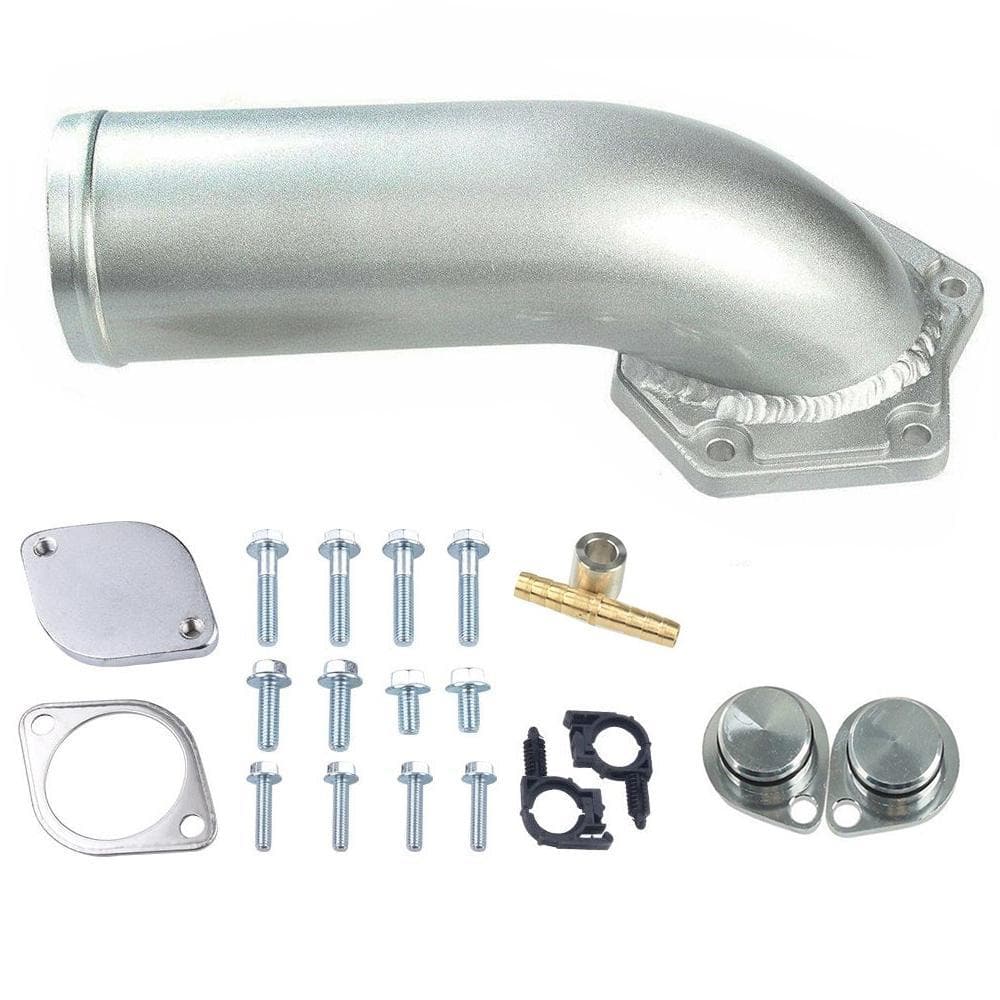 Application: The 6.4-liter Powerstroke cooler removal kit is designed for the 2008-2010 Super Duty, replacing the stock EGR valve and cooler system, and also includes a high-flow aluminum intake bend for mandrel bending completed with high gloss FLASHARK powder Tube coating.
