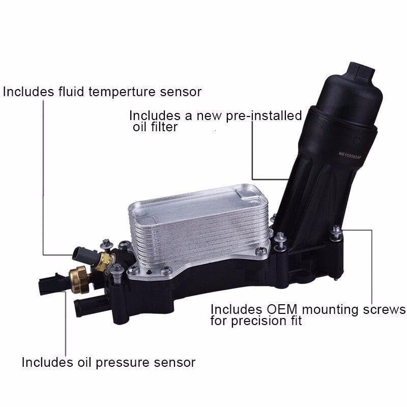 This is an engine oil cooler and oil filter assembly. It comes with an oil pressure gauge and temperature sensor.